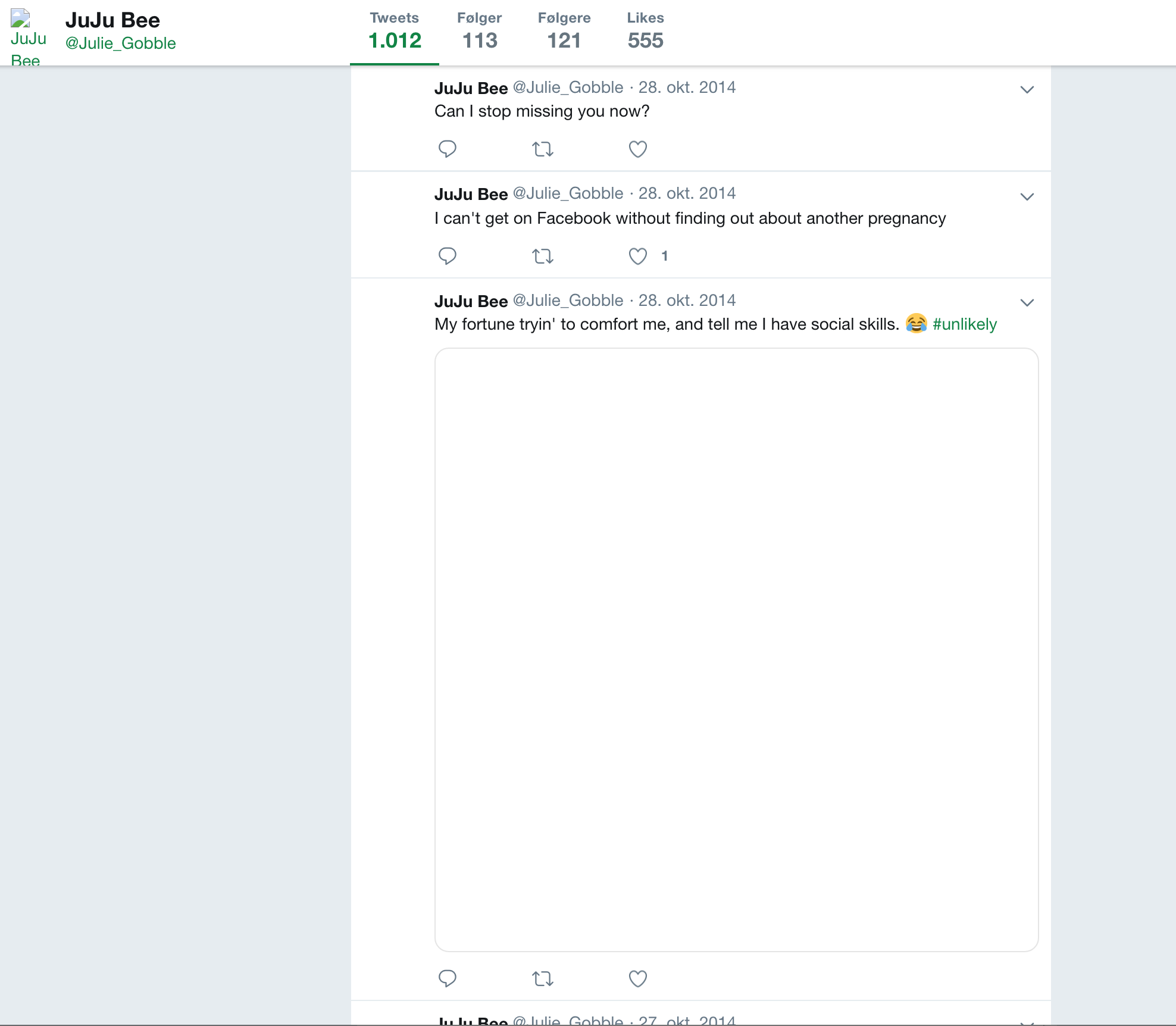 UPDATE: Since the publishing of this article, Julie Gobble announced her campaign for TX-6 and deleted her old Twitter account. However, The Daily Fold still has the screenshots provided above, and her old Twitter page should still show up on internet cache. We have provided further screenshots below to show proof that the account existed, courtesy of Google’s European Cache, as well as a Tweet which matches her birthday according to voter files.